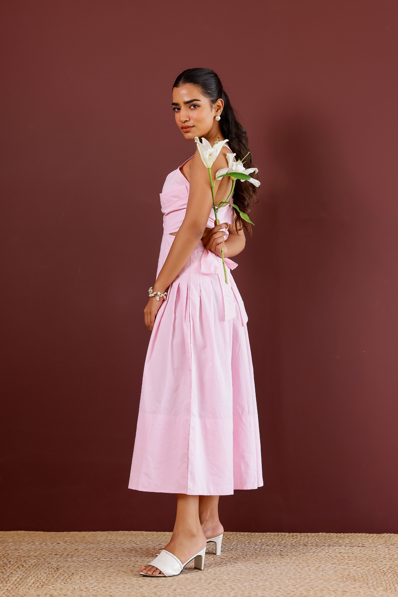 Radiate timeless elegance in our Blush Pink Pleated Midi Dress – a flattering halter-neck dress designed to make heads turn. Featuring a structured bust with sweetheart neckline and a pleated flowy skirt, this dress gives the illusion of a two-piece look while offering the ease of a one-and-done outfit.